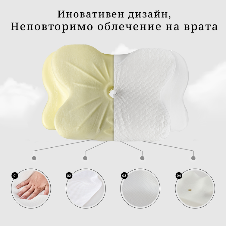 Изключителен иновативен дизайн – Ортопедичната възглавница е създадена за прецизна опора на врата и гръбначния стълб. Перфектна за странично, гръбно или коремно спане, тя осигурява правилна позиция на тялото и облекчение на болката.